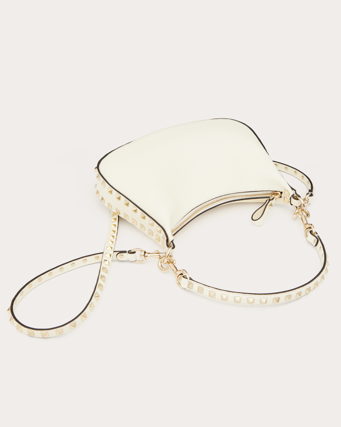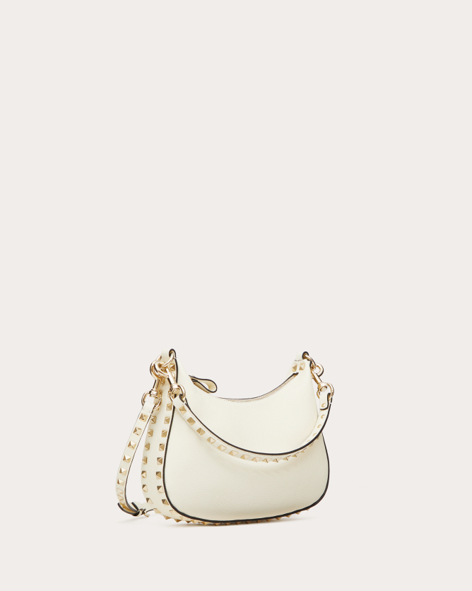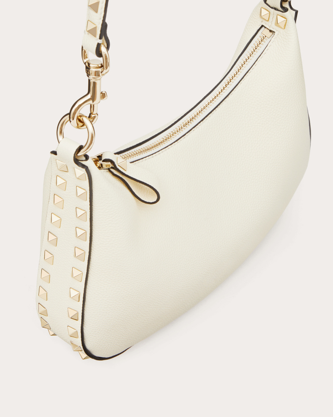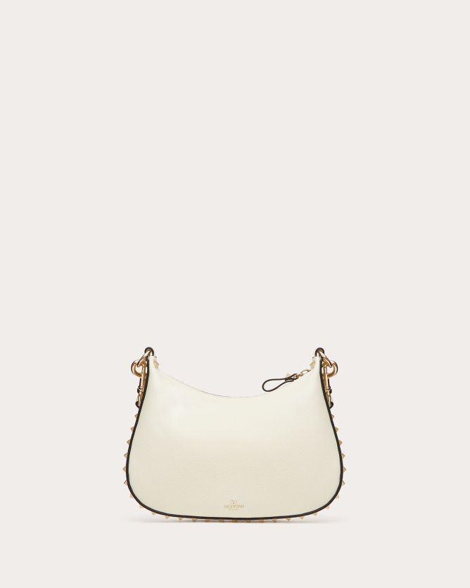 The Valentino Garavani Rockstud Small Calf Leather Hobo Bag is a refined accessory that combines luxury with versatility. Crafted in Italy from premium calfskin leather, it features the brand’s signature Rockstud detailing, adding a touch of edgy sophistication. The bag offers multiple carrying options with its adjustable shoulder strap and top handle, allowing it to be worn as a shoulder bag or carried by hand. Its interior includes a slip pocket for organization, and the zip closure ensures your belongings are secure.