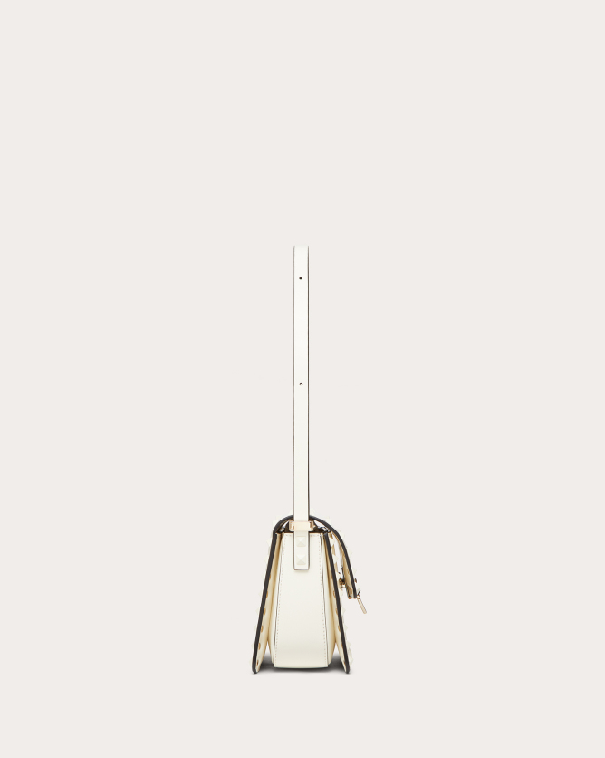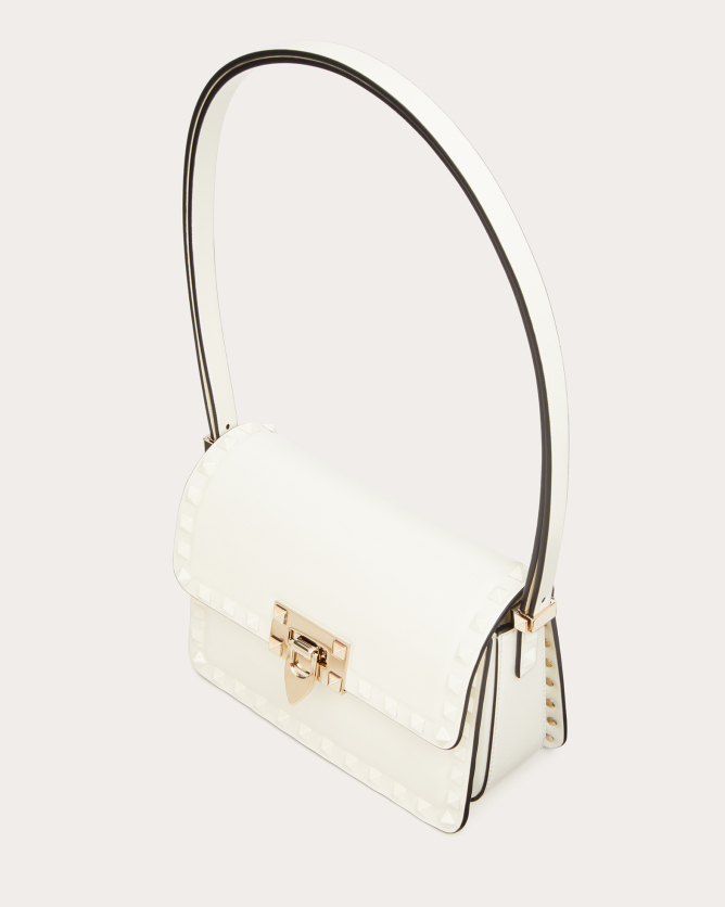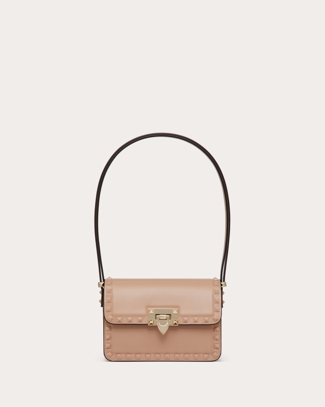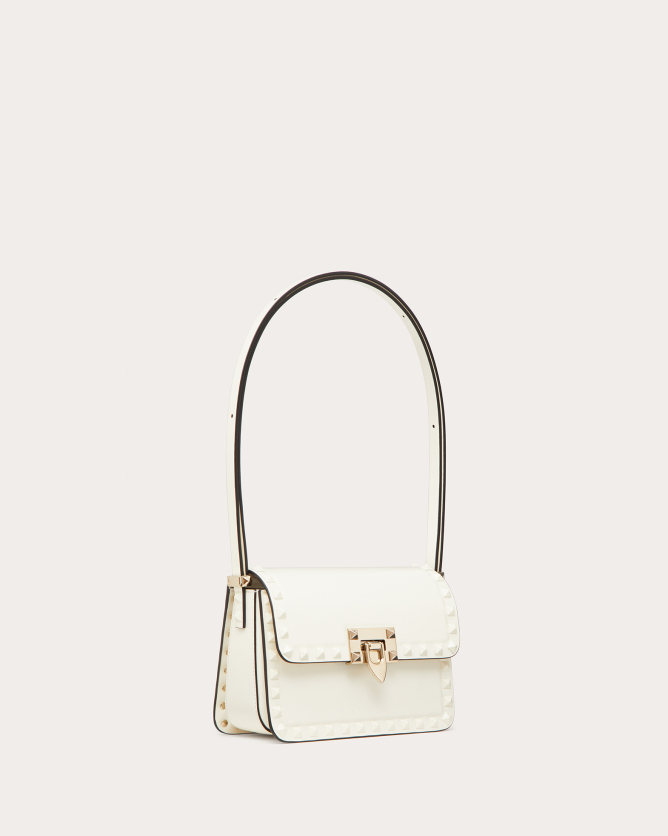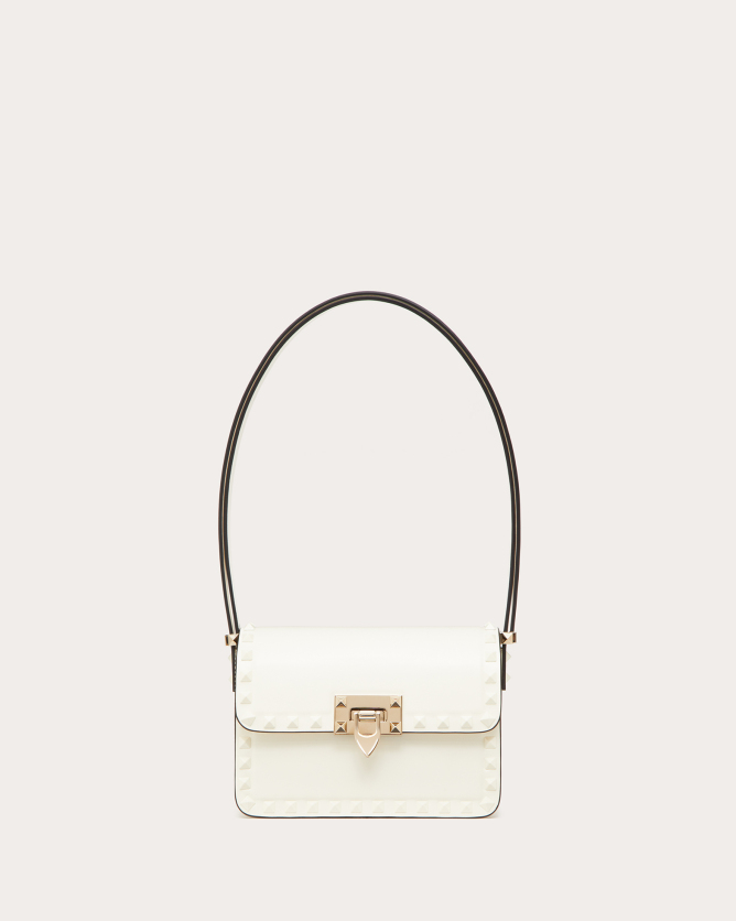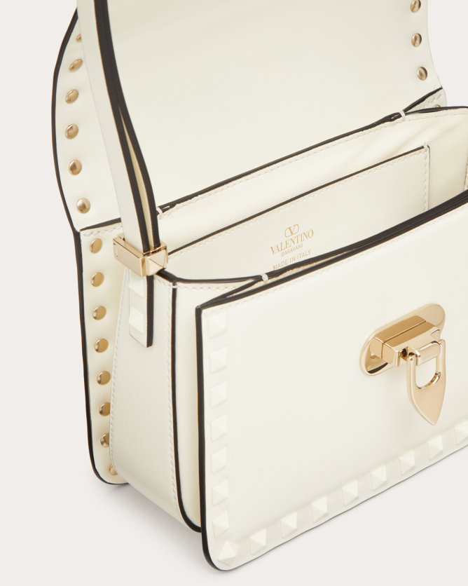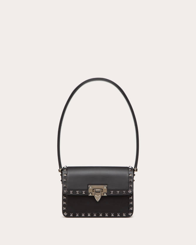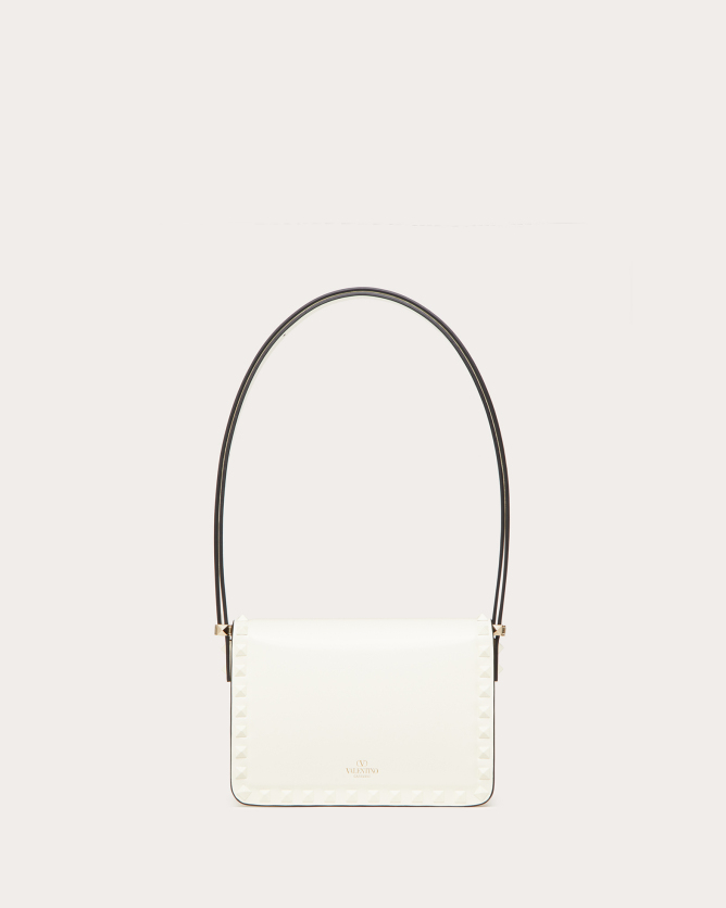 The Valentino Garavani Rockstud23 Small Mirror Effect Calfskin Handbag is a striking accessory that combines contemporary design with timeless elegance. Crafted in Italy from glossy mirror-effect calfskin leather, it features the iconic Rockstud detailing in a matching metallic finish. The bag offers multiple carrying options with its detachable shoulder strap and top handle, allowing it to be worn as a crossbody, shoulder bag, or carried by hand. Its compact size makes it perfect for both day and evening occasions, adding a bold statement to any outfit.